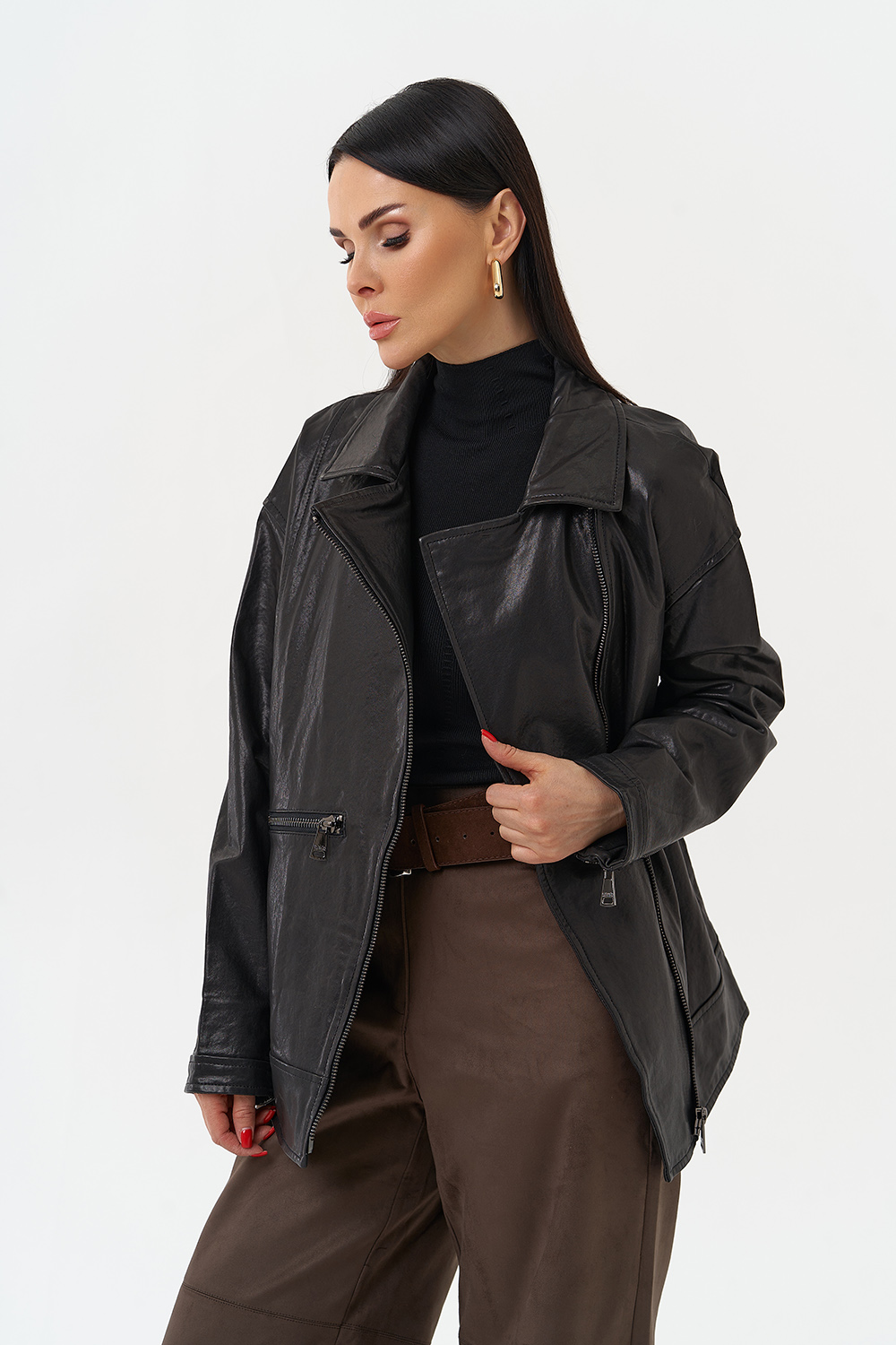 Женская косуха оверсайз черного цвета артикул nazran29989 и другие товары категории Женские кожаные куртки и плащи доступны в каталоге интернет-магазина Малина Сибериан в Назрани по цене от 3933 ₽. Ознакомьтесь с подробными характеристиками и описанием, а также отзывами о данном товаре и нашей компании. Делайте правильный выбор и заказывайте Женские кожаные куртки и плащи онлайн.