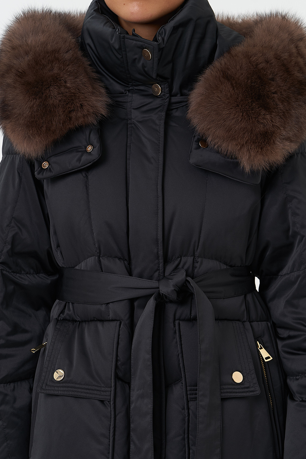 Крой воротника - капюшон, отделка песец под соболь